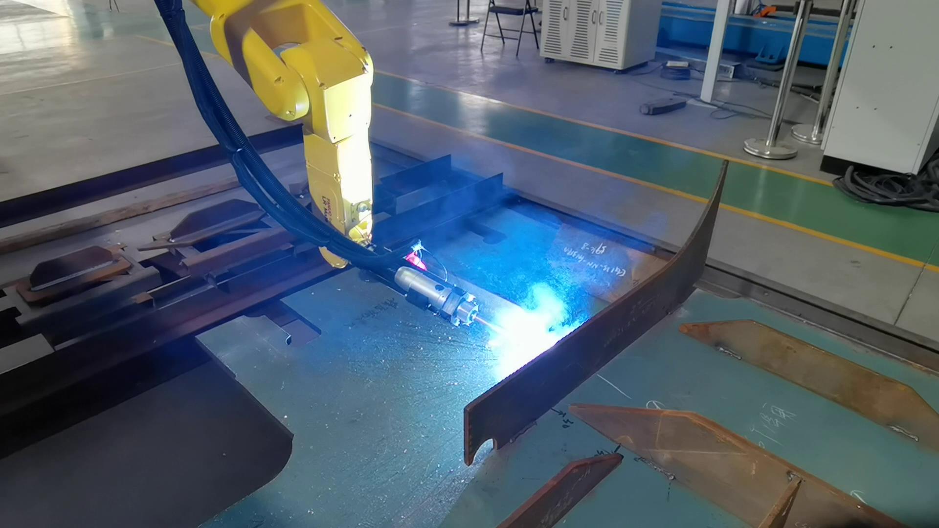 智能焊接在鋼構(gòu)行業(yè)的成功應(yīng)用針對鋼結(jié)構(gòu)中常見的H型鋼等鋼梁工件,威卓設(shè)計研發(fā)了小龍門智能焊接工作站,焊槍部分使用鋼梁專用焊槍,更適用于鋼梁焊接;搭配傳感器使用,自動尋位識別焊縫,無